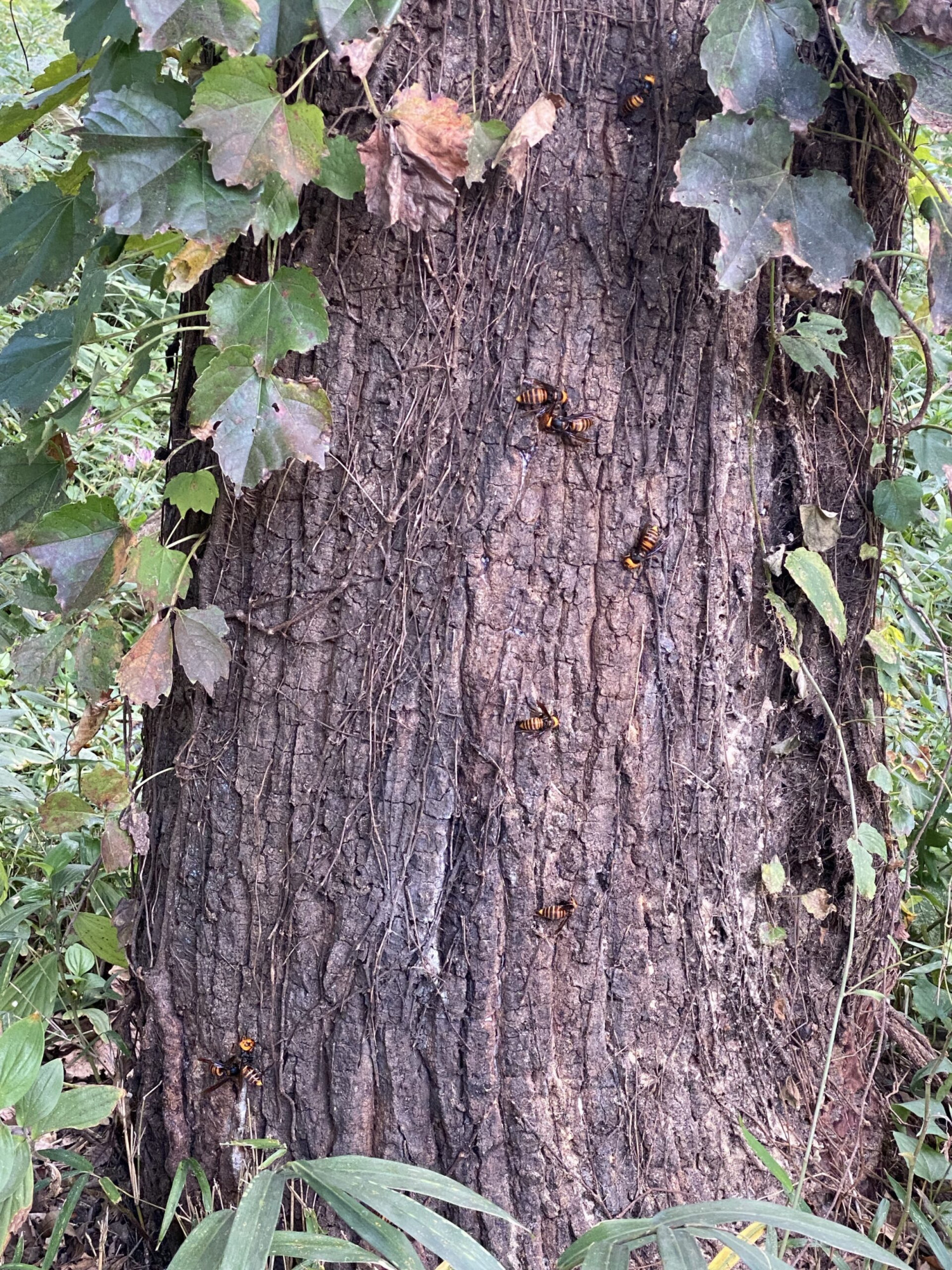 オオスズメバチですね、恐ろしいです。作業場のすぐ隣でした。。