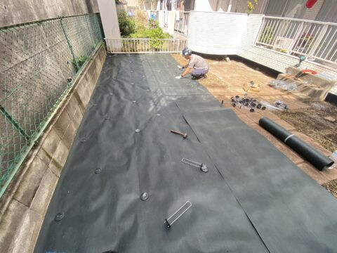 防草シート敷設しました!